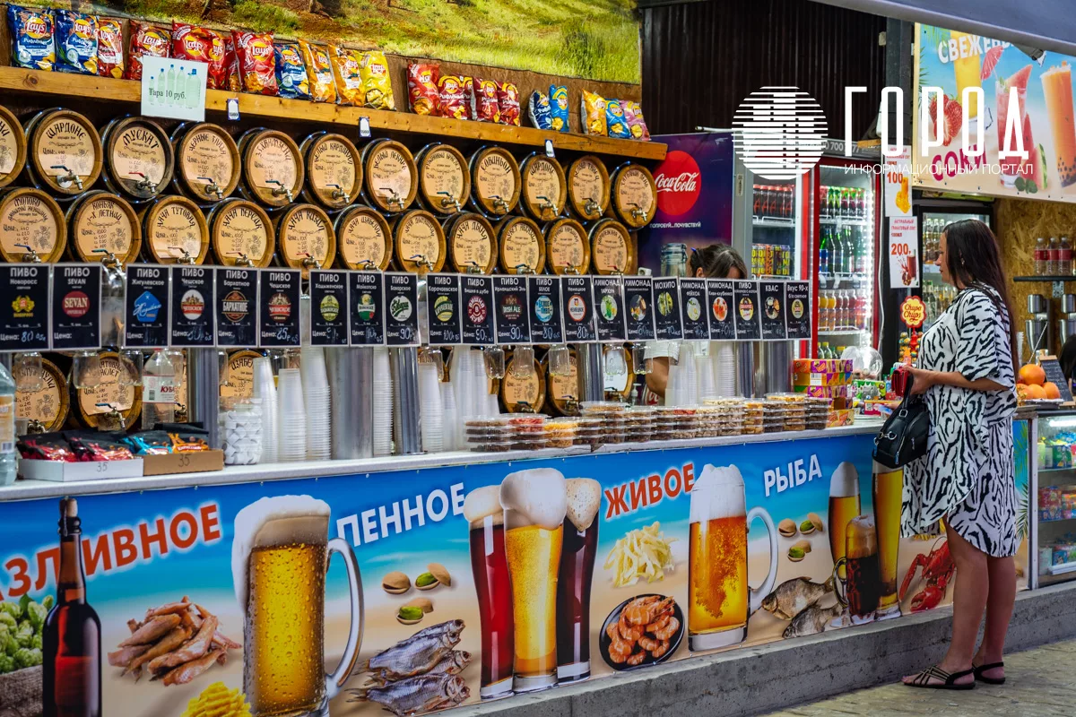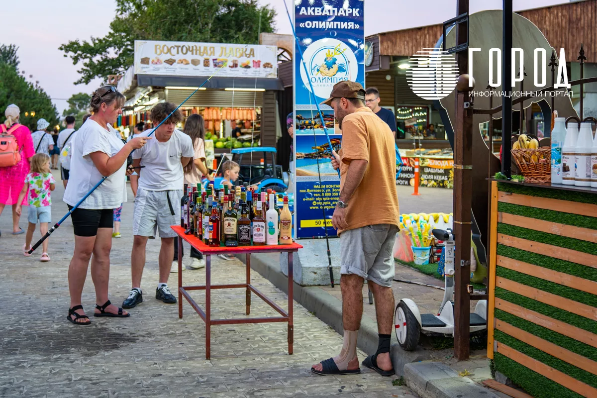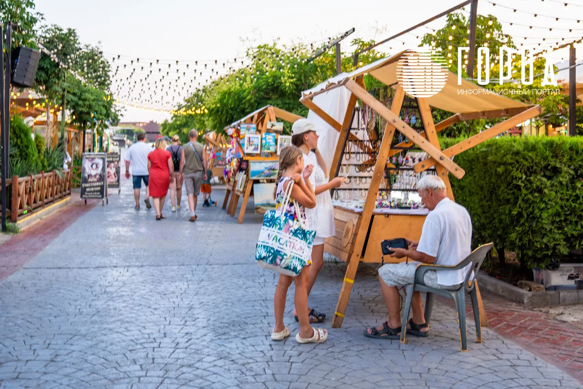 Общая картина курортного сезона в Витязево отличается в зависимости от времени суток, а также в будние и выходные. Если ехать днём по посёлку, то практически никого не встречаешь. Людей на улицах мало, что отчасти понятно. Одни купаются на море, другие – в бассейнах. Открылись пока далеко не все точки общепита и магазины. Некоторые из них закрыты вовсе, а кто-то, увидев увеличивающиеся потоки туристов, только готовится к открытию. И это во второй половине июля. Цены вполне сносные. За несколько сотен продают круги для плавания и жилеты, от 250 рублей – очки для купания, за 600 рублей можно купить качественную зарядку для телефона. Магнитики продают от 100 рублей, а ракушки – от 50 рублей.